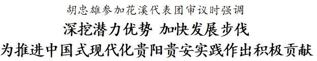 2月1日,省委常委、市委书记胡忠雄来到市十五届人大四次会议花溪代表团,与代表们一起审议市人大常委会工作报告、市“两院”工作报告。他强调,要深入学习贯彻习近平总书记视察贵州重要讲话精神,认真落实省市两会精神,深入挖掘自身潜力优势,加快高质量发展步伐,为推进中国式现代化贵阳贵安实践作出积极贡献。