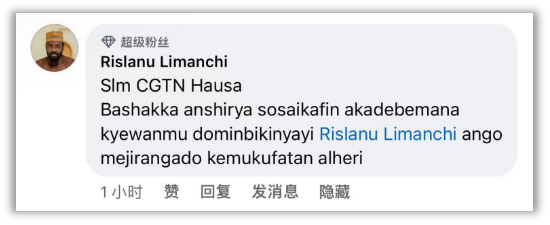 尼日利亚网友Rislanu Limanchi留言:“春节快乐!总台播出的节目相当精彩,一定是经过精心准备的,晚会特别好看!”