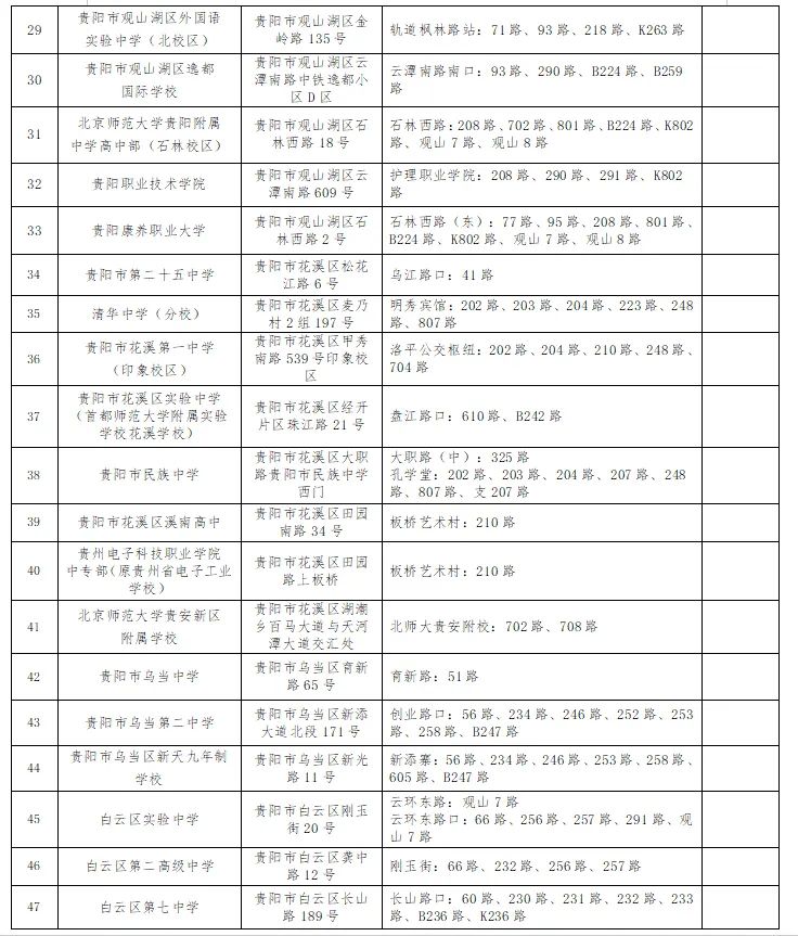 附件:贵阳市2024年公务员考录笔试(含省直考区)考点公交线路及增开公交专线情况