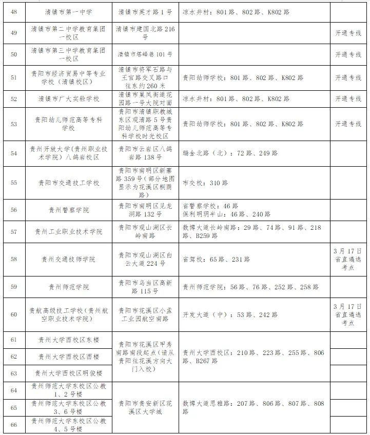 3月16日开通1条考试专线,直达清镇各考点院校: