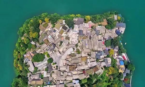 三面环水的半岛有着400多年历史的镇山村,绿树成荫、绿水环绕。