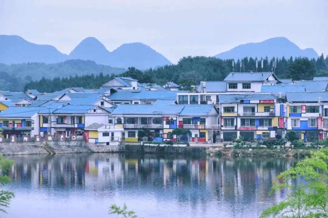 青山、绿水、农家小院,潺潺流水穿寨而过,四周群山环绕,林木葱郁,乘坐小船或竹筏游荡湖面,青山逐渐散开,春风习习、拂面而来,十分惬意。