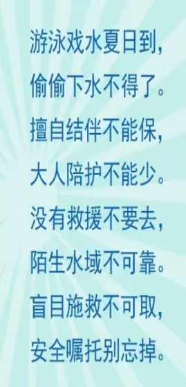 3、不会游泳者,在熟悉水性的人群带领下游泳,且有救生员进行安全防护。