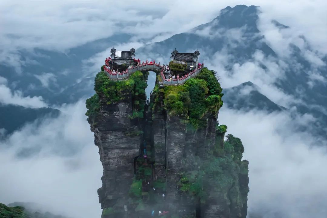 位于贵州省铜仁市,是中国五大佛教名山之一。梵净山的原始洪荒景观和四大天象奇观(云瀑、禅雾、幻影、佛光)为它添上了神秘的色彩,更是“一生一定要去一次”的人间“天空之城”。