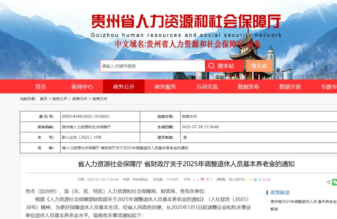 根据《人力资源社会保障部财政部关于2025年调整退休人员基本养老金的通知》(人社部发〔2025〕38号)精神,为更好保障退休人员基本生活,经省人民政府同意,从2025年1月1日起调整企业和机关事业单位退休人员基本养老金水平。现就有关事项通知如下: