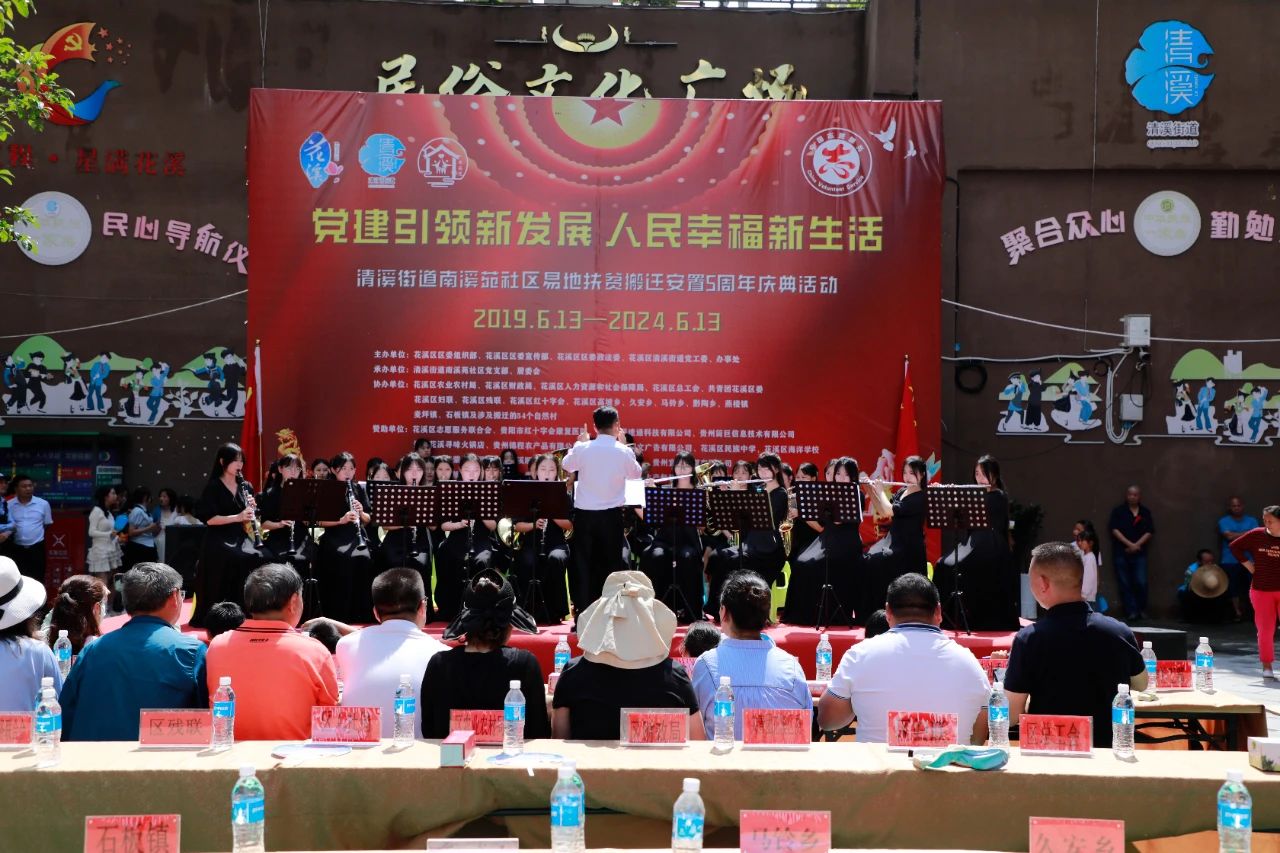 活动由区委组织部、区委宣传部、区委政法委、清溪街道党工委、办事处主办,以“党建引领新发展 人民幸福新生活”为主题,借易地扶贫搬迁五周年契机,开展文艺汇演、合拢宴、露天K歌等精彩纷呈的互动节目,展现易地扶贫搬迁群众在新家园开启新生活、奋进新未来的喜人面貌。