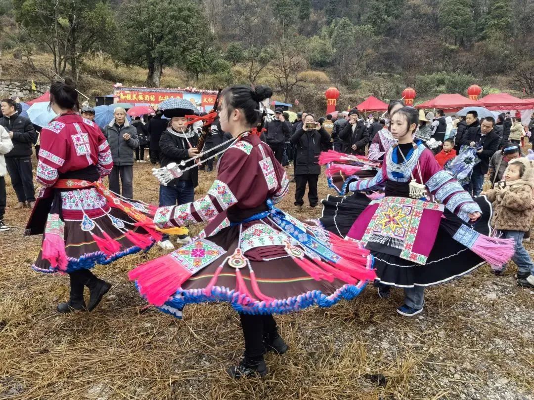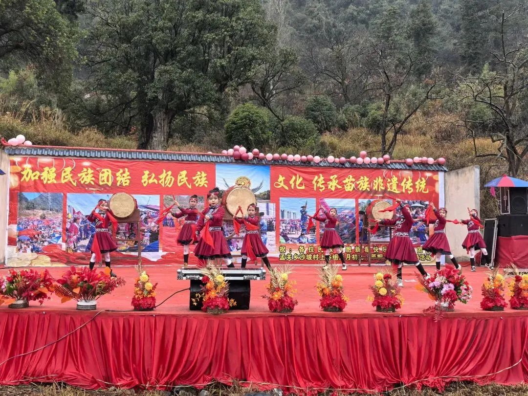 2月6日,大年初九,一年一度的苗族“跳花场”民俗活动在孟关乡沙坡村上谷组举行,邻近村寨及周边乡镇的苗族同胞们欢聚一堂,敲击铜鼓、吹奏芦笙、载歌载舞,共同庆祝这一盛大节日。