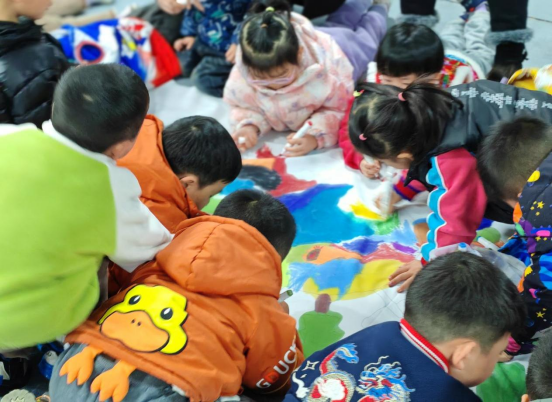 随后,工作人员铺上了大大的画布,孩子们纷纷拿起水彩笔,围在画布旁,尽情创作,小小的画布上汇聚出一幅幅充满童真与幻想的绿色家园画卷。