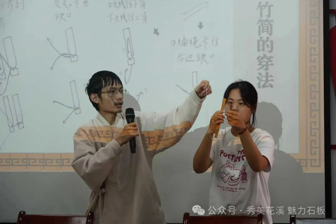 接着进行下一个活动,让大家感受非遗文化体验,进行竹简制作。在专业老师的悉心指导下,大家亲自动手,体验竹简的装订、书写制作过程。大家小心翼翼地操作着每一个步骤,感受着古老非遗技艺的独特魅力,在实践中加深了对中华优秀传统文化的认知与热爱。