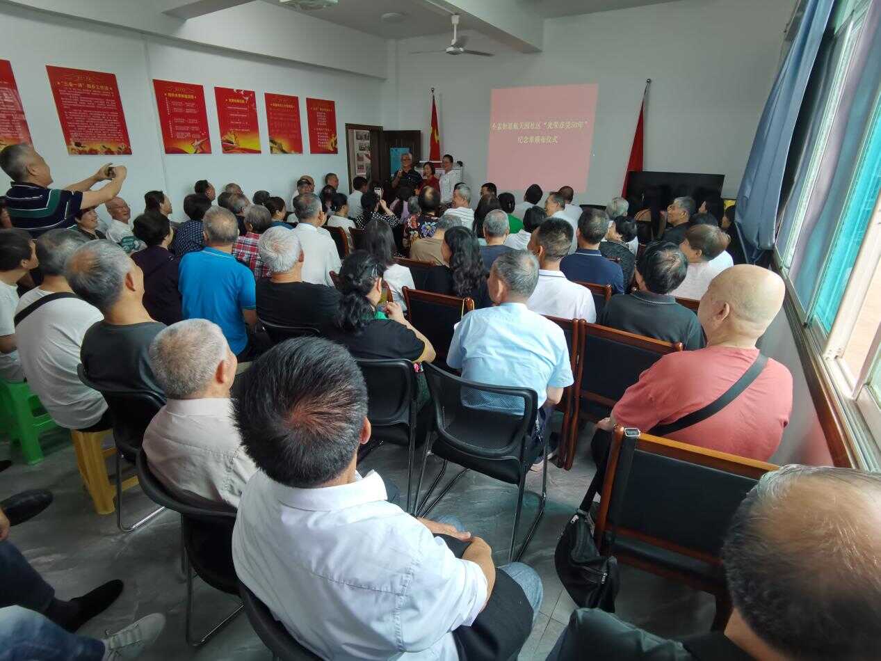 7月1日,航天园社区党总支组织辖区党员开展“庆七· 一”主题活动暨“光荣在党50年”纪念章颁发仪式,社区党员共百余人参加。