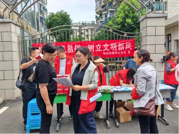 近日,花溪区阳光街道学士社区组织志愿者开展了“破除陈规陋习 共树文明新风”移风易俗主题宣传活动。