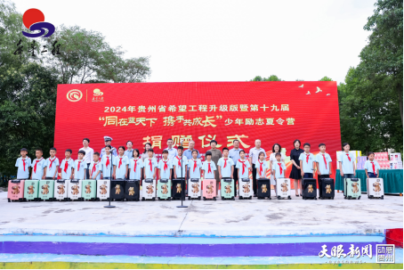 少年应有鸿鹄志,不负青春逐梦时!2024年7月20日上午,2024年贵州省希望工程升级版暨第十九届“同在蓝天下 携手共成长”少年励志系列公益夏令营在省级中小学生研学实践基地—全国青少年贵州活动营地集中开营。