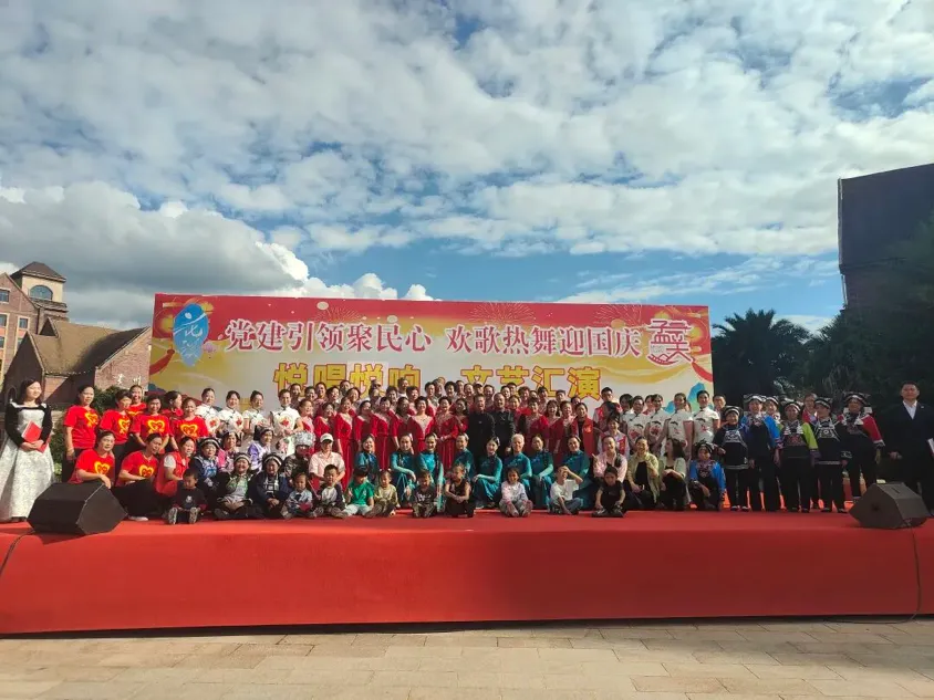 9月27日下午,由花溪区新时代文明实践中心、区委宣传部、区文旅局指导,孟关乡碧桂园社区举办“党建引领聚民心,欢歌热舞迎国庆”悦唱悦响·文艺汇演活动顺利举行。辖区友邻单位、党员群众欢聚一堂,共同迎接国庆节。