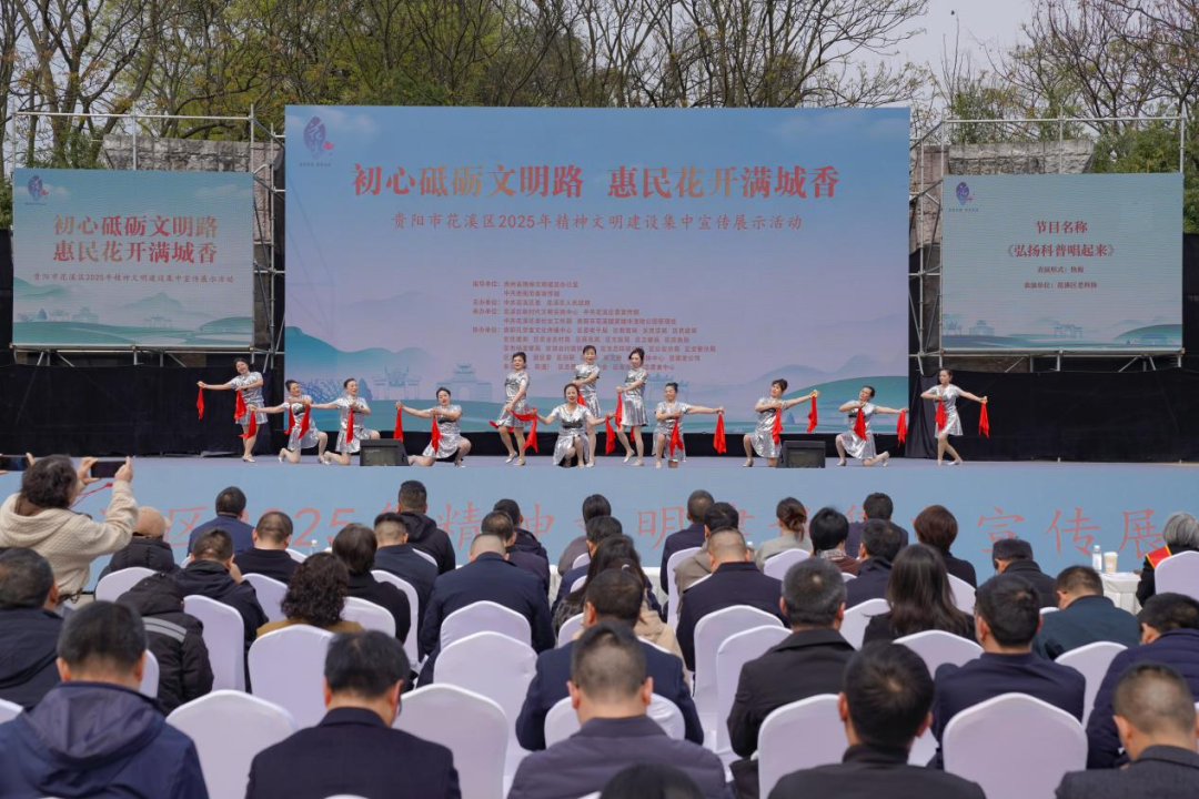 活动中,精彩纷呈的文艺节目获得现场观众热烈的掌声。舞台两侧还设置了文明之花、健康之花、科普之花、文艺之花、生态之花五个主题展棚,为市民提供惠民服务,让群众在轻松参与中感受到温暖与便利。此外,活动还设置了文明驿站,线上线下同步征集市民对花溪精神文明建设的意见建议。