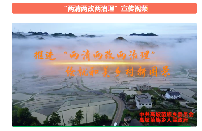 在高坡乡“两清两改两治理”工作中,全乡党员、干部创新思维,采用顺口溜、民谣、宣传视频等群众喜闻乐见的方式,总结提炼了工作重点,引导群众积极投入到“两清两改两治理”工作中来。高坡乡平寨、摆龙、五寨驻村工作队与扰绕村“两委”共同拍摄了“两清两改两治理”的宣传视频,通过形式多样的方式,进一步提高群众对人居环境整治的知晓率、参与度。