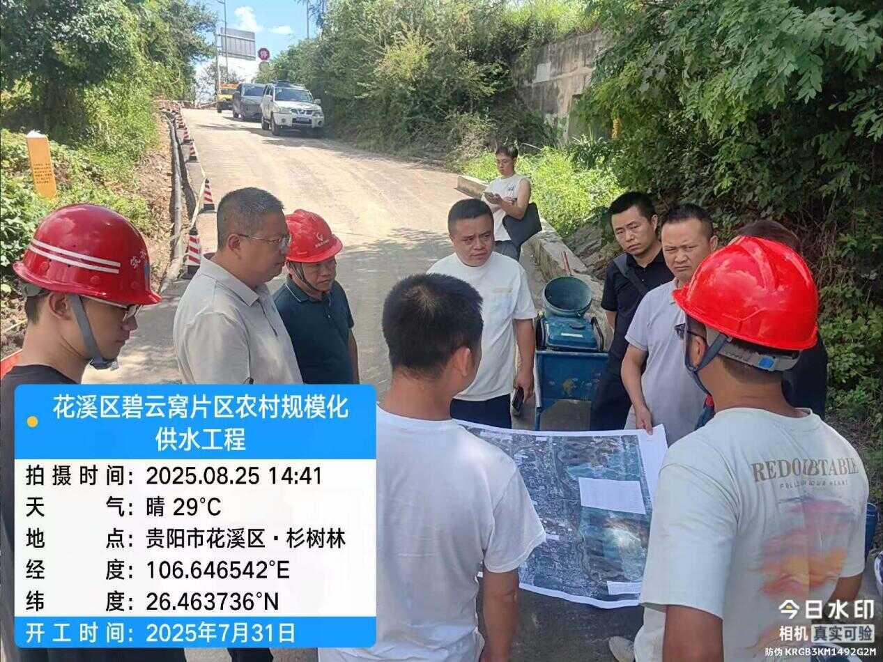 2025年8月25日,贵阳市水务管理局前往久安乡和碧云窝片区农村规模化供水工程调研。此次调研旨在深入了解项目进展情况,确保久安乡和碧云窝片区农村规模化供水工程按期、安全、高质量完成,花溪区水务管理局陪同调研。