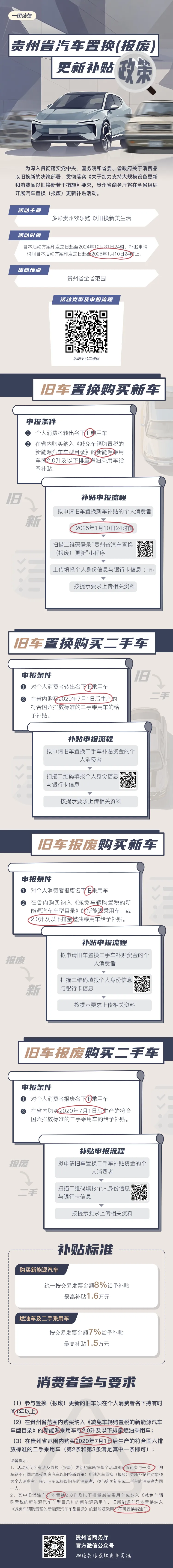 一图读懂丨贵州省汽车置换(报废)更新补贴政策