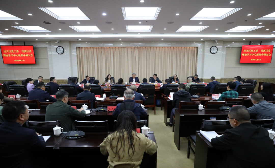 4月27日,经开区党工委、花溪区委理论学习中心组集中研讨会举行。经开区党工委书记、花溪区委书记许俊松主持会议并讲话。他强调,要深入学习贯彻习近平总书记关于加强党的作风建设的重要论述和在贵州考察时的重要讲话精神,学思践悟谋发展、担当实干建新功,以优良作风谱写经开花溪高质量发展新篇章。