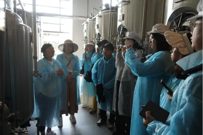 在花溪板桥艺术村溪坊精酿啤酒,采风团走进生产车间,详细了解啤酒酿造工艺和市场销售情况。记者们对融入本地元素的精酿啤酒表现出浓厚兴趣,称赞其“地域化特性鲜明,是文旅融合的生动实践”。