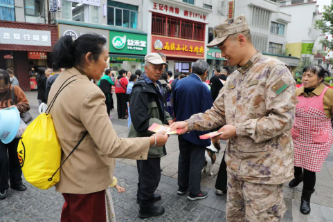 在第十个全民国家安全教育日来临之际,花溪区人武部紧扣“全民国家安全教育 走深走实十周年”主题,联合区国动办、阳光街道、十字街社区等单位,在辖区开展宣传教育活动,推动国家安全理念深入人心。