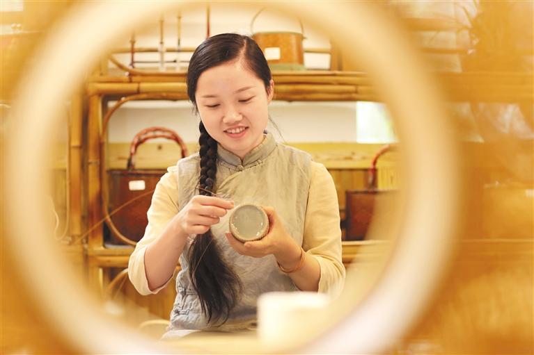“要让传统文化‘活’起来,非遗‘潮’起来。”杨昌芹先后到上海等地的美术院校进修学习,将学到的新知识、新技能运用到竹编工艺编织当中,创新推出了竹编瓷器、竹编首饰、竹编禅意香炉等一系列竹编工艺品,很受市场青睐。