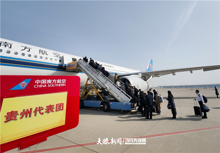 赴京参加十四届全国人大一次会议的贵州代表乘飞机返回贵阳