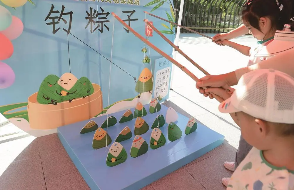 钓鱼你听说过,钓粽子你玩过吗?一根竿子、一根长线制成垂钓工具,甩杆下钩,看谁能将粽子钓到手。这种新潮的玩法,等着你来挑战!