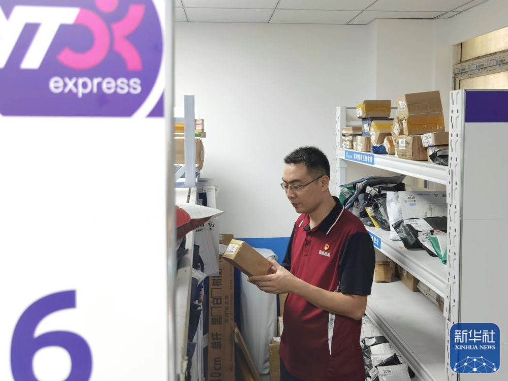 马石光在圆通速递服务有限公司湖南省长沙市高桥分公司营运部分拣包裹(2022年9月28日摄)。新华社发