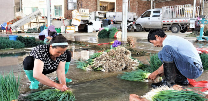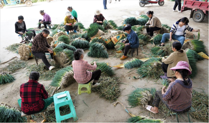 走进骑龙村香葱分拣中心,三十吨日处理量的流水线正高速运转。清洗、分拣、装箱工序环环相扣,发往安徽、上海、湖南等地的货车排成长龙。在这里,三代人共同为“香葱事业”奋斗,经验丰富的老农把控分拣品质,中生代负责采收运输,90后、00后则通过电商直播开拓新销路。“全村876户几乎都参与其中,形成了完整的产业链。”村支书刘其云指着正在改造的分拣区介绍,新引进的自动化清洗设备和真空包装线即将投用,在清洗、包装等环节进一步提高效率,在品种品质上提质升级,为更多村民带来香葱种植的福利。