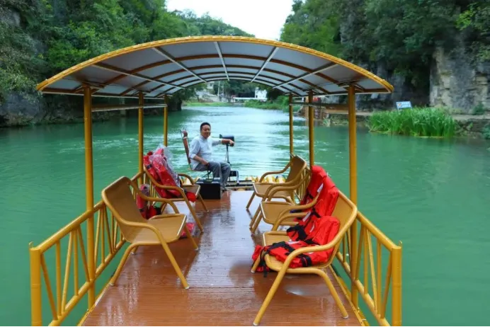 项目的建成,不仅为游客提供了亲近自然、感受山水之美的绝佳方式,也将为芦荻村带来实实在在的经济效益。2024年的国庆,“竹筏漂”项目完成了试运营,来自各地的游客纷至沓来,乘坐竹筏顺流而下,欣赏沿途的美景,感受着微风拂面的惬意。今年的五一,“竹筏漂”项目已正式运营,为给游客提供优质、贴心的服务,由党员干部带头、村民群众主动参与的先锋服务队做足了准备,他们在游客接待、安全保障、秩序维护等岗位上发光发热,让游客能够切实感受到芦荻村人的热情与真诚。