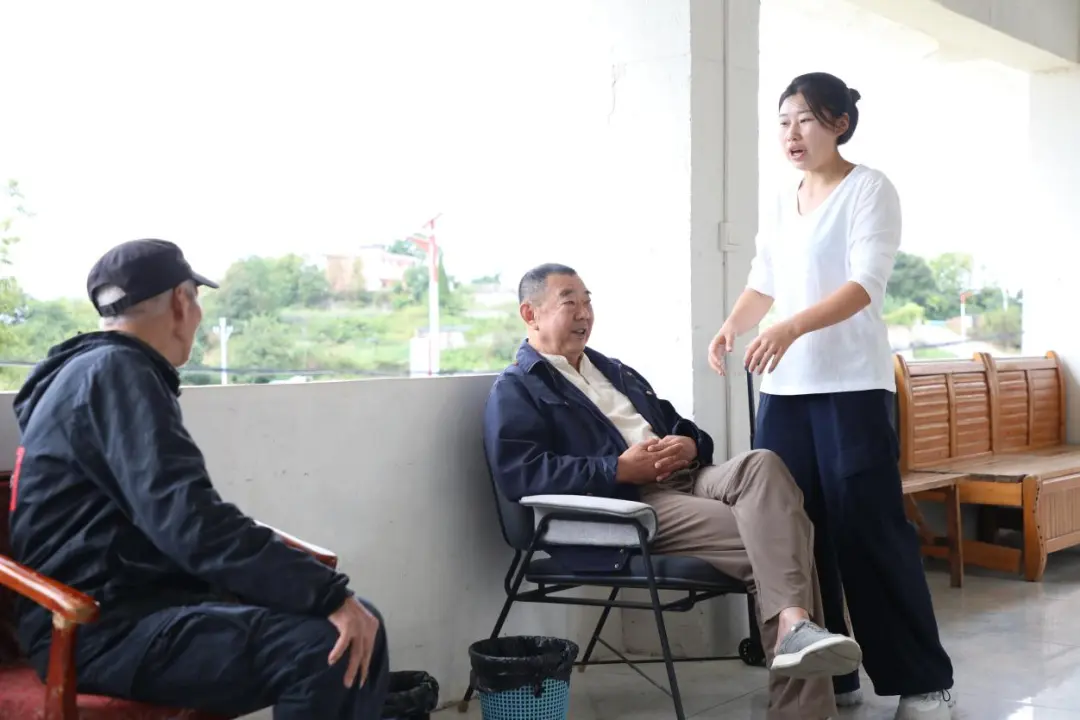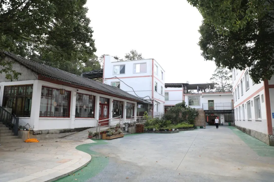 9月17日清晨,记者走进位于石板镇镇山村的镇山颐养中心,映入眼帘的是整洁宽敞的院落,几位老人在护理人员的陪伴下悠闲活动,远处镇山村的自然美景与养老院相映成趣,更添几分宁静与惬意。
