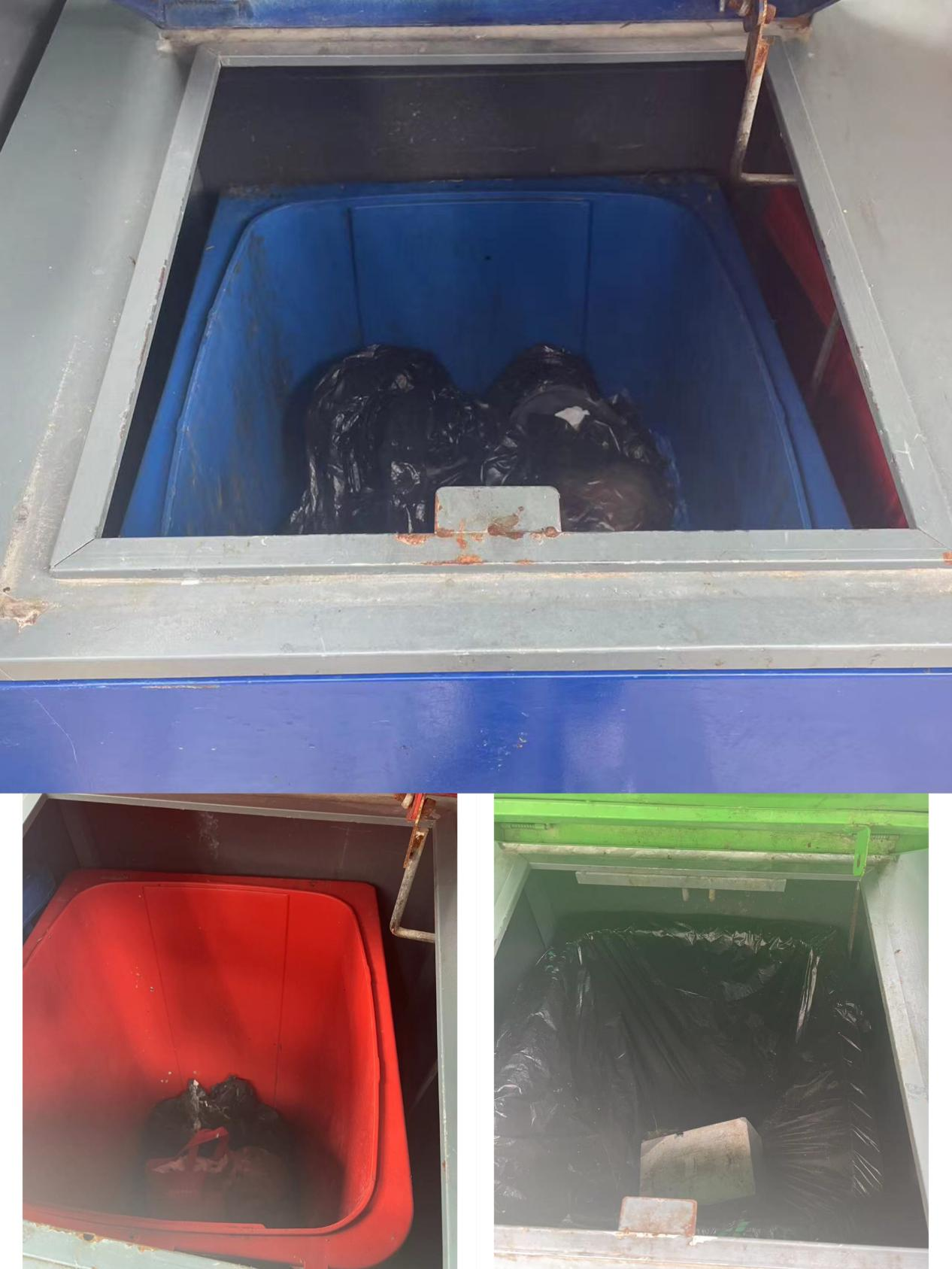 问题:垃圾未按分类投放直接混投。