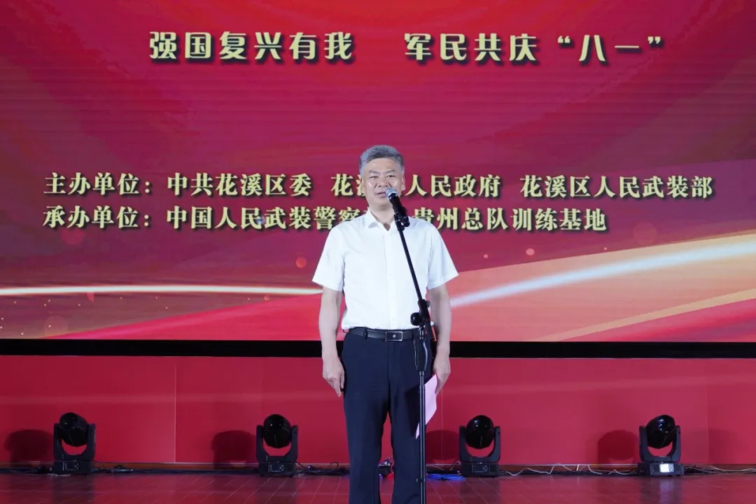 在联欢晚会上,聂学政在讲话中表示,驻花溪广大官兵要坚持以习近平新时代中国特色社会主义思想和习近平强军思想为指引,努力学习党的二十届三中全会精神,军地合力、军民同心,持续激发广大军民爱国拥军、爱民奉献的思想自觉、政治自觉和行动自觉,为花溪区“一城一副四区”建设提供强大动能,为实现中华民族伟大复兴的中国梦、强军梦提供不竭动力。