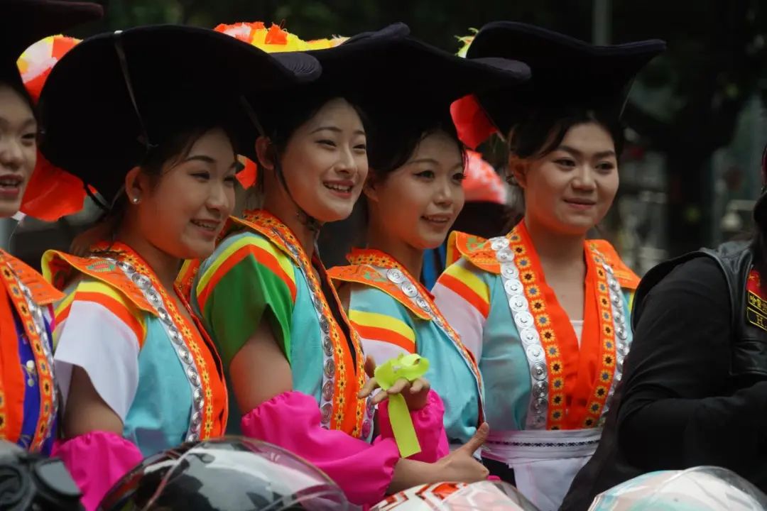 机车引擎震天响,苗舞风情醉四方,花溪方阵惊艳亮相!