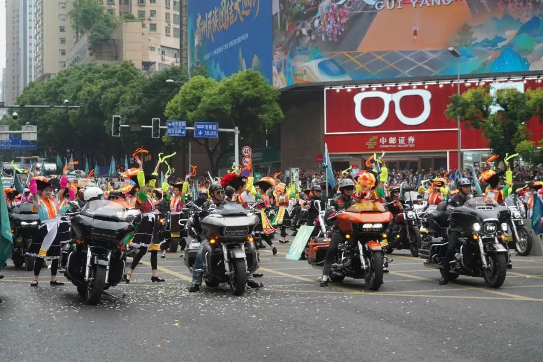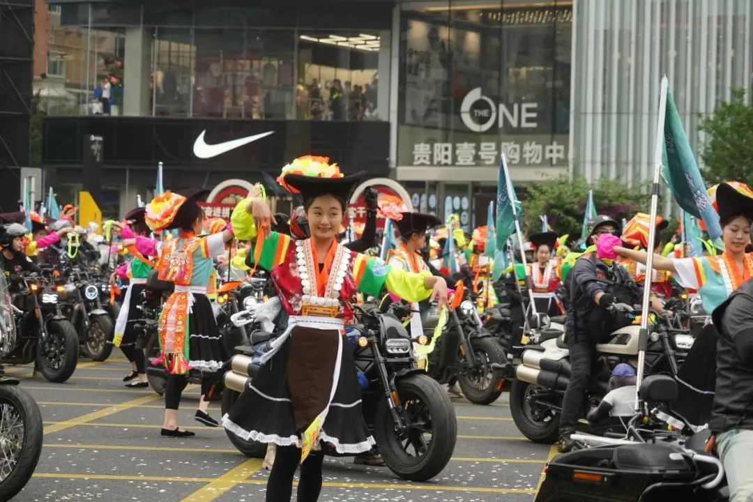 一路上,18辆改装车、100台机车+100位苗族姑娘以及自行车等组成的一路黔行方阵,完美诠释了“爽爽贵阳 秀美花溪”主题,展现了花溪这片被山水眷顾的灵秀之地的勃勃生机与现代气质,凸显了国家全域旅游示范区与生态文明建设的成果。