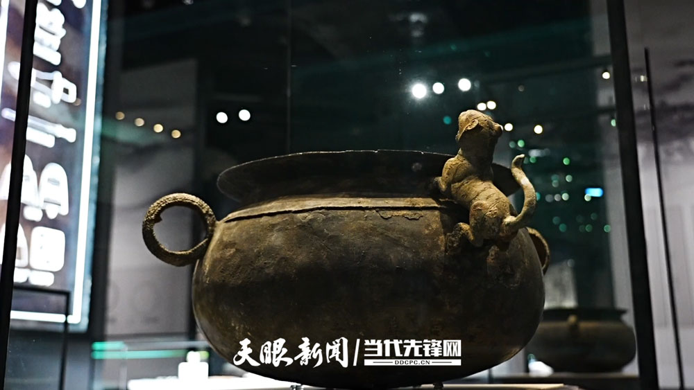 出土于赫章可乐M274遗址的立虎辫索纹耳铜釜