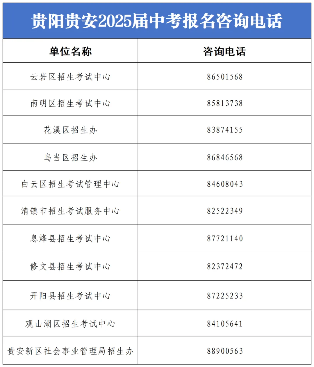 根据要求,为深入推进考试招生制度改革,促进义务教育优质均衡发展和高中阶段各类教育协调发展,维护考试招生公平,本次中考报名工作统一在“贵阳市高中阶段学校招生考试管理服务平台——报名管理系统”上进行操作,考生报考信息由各区(市、县)学校统一采集,并使用专用电脑进行报名。家长和考生可登录贵阳市招生考试管理中心网站(网址:http://www.gyzkzx.cn/),查询各区(市、县)中考报名咨询联系电话。报名细则如下↓↓↓