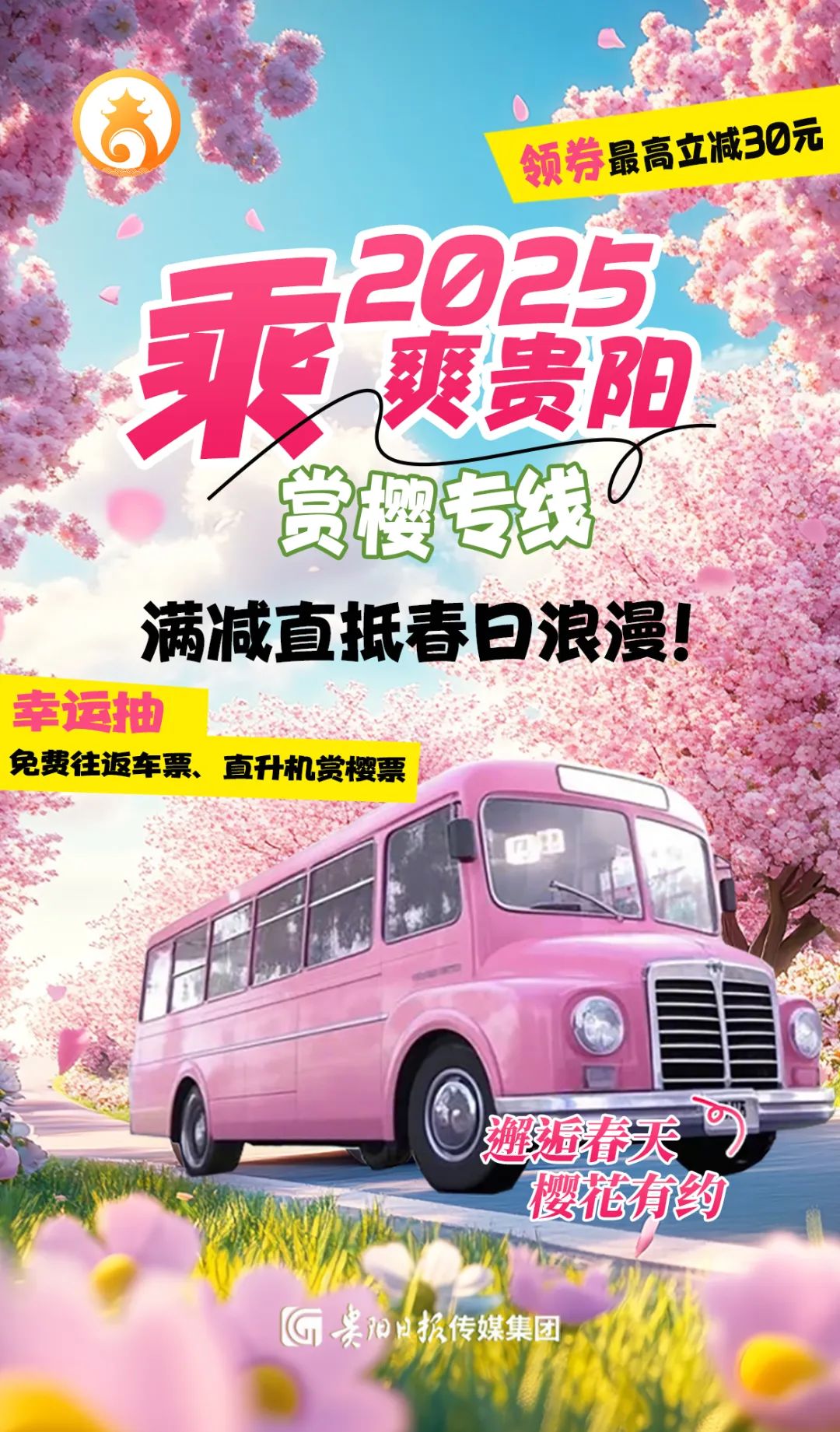 3月16日起,登录“爽贵阳”APP进入赏樱专线活动专区,