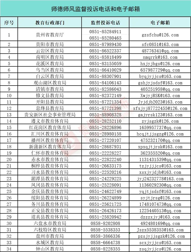 为进一步加强我省教育系统师德师风建设,构建师德师风建设长效机制,营造风清气正的教书育人环境,现公布省市县三级教育行政部门师德师风监督投诉方式,一起来看——