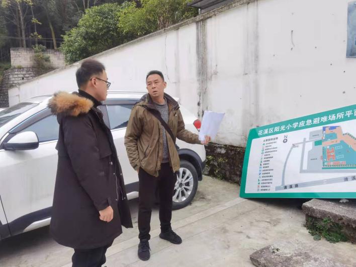 检查组一行到阳光小学、花溪第二小学保利校区体育场地实地查看标识标牌安置情况,查看并询问现场工作人员具体施工情况;到清溪街道办事处查看应急指挥设施设置情况,与街道办事处具体工作人员交流洽谈应急指挥设施设置相关事宜。