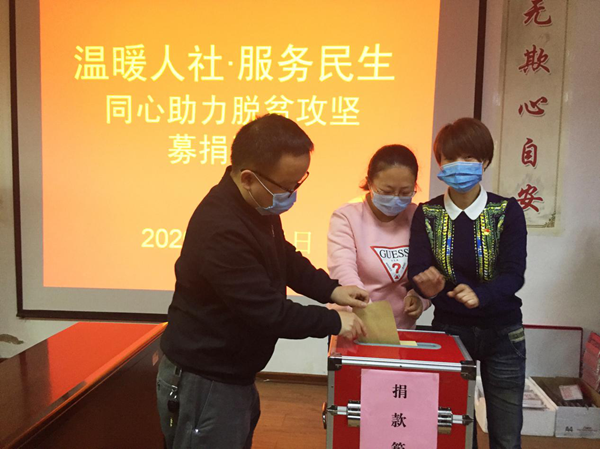 花溪区人社局认真贯彻落实贵州省脱贫攻坚“冲刺90天打赢歼灭战”动员大会精神,旨在通过募捐活动进一步巩固对贫困户的帮扶工作,关心贫困户生产、生活上受新冠肺炎疫情影响的近况,关爱贫困户中的老、弱、病、残特殊群体,为决战决胜脱贫攻坚尽一份微薄之力,真正践行共产党员全心全意为民服务初心和使命。(通讯员:谭永红 编辑:何菲菲 尹旭)