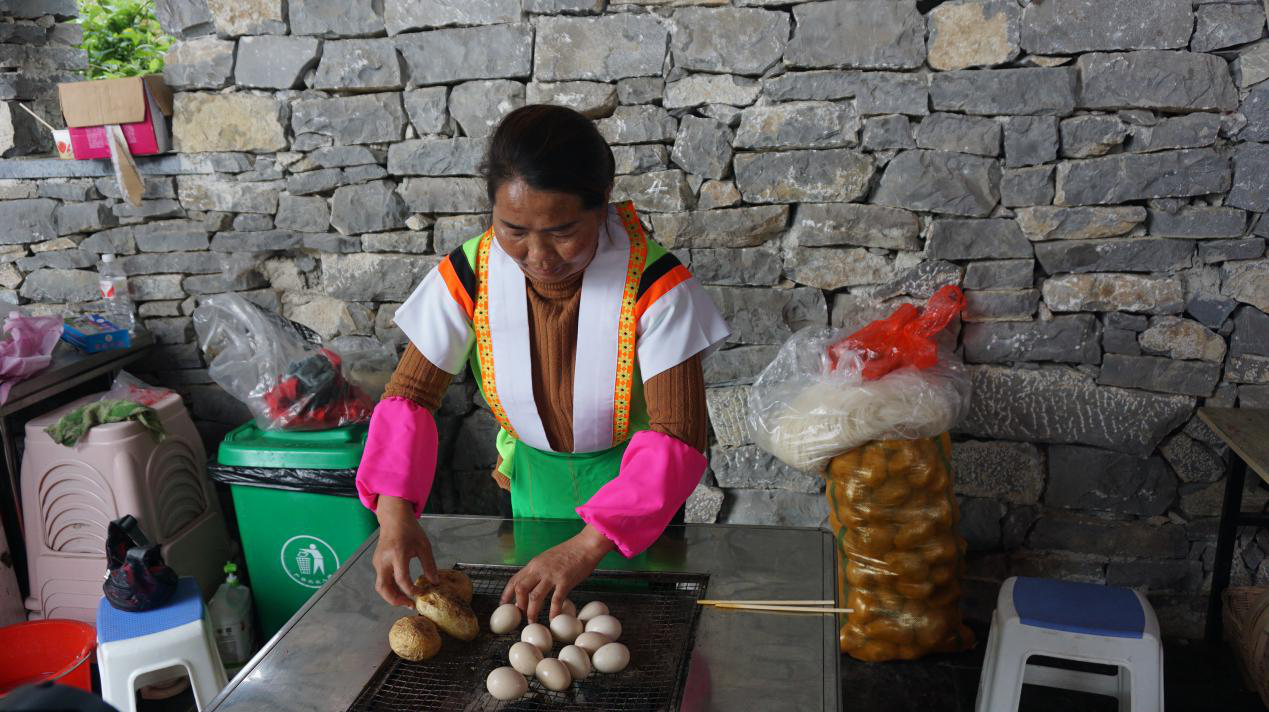 与扰绕村相邻的石门村,2016年便开始参与“溪南十锦”项目的建设,修建了挂壁栈道、过街天桥、民族文化广场等,旅游基础设施得到极大提升,游客多了,老百姓增收的机会也多了。这不,一直在浙江打工的罗光敏就嗅到了商机,回到村里摆了一个小吃摊,就解决了一家人的生计。