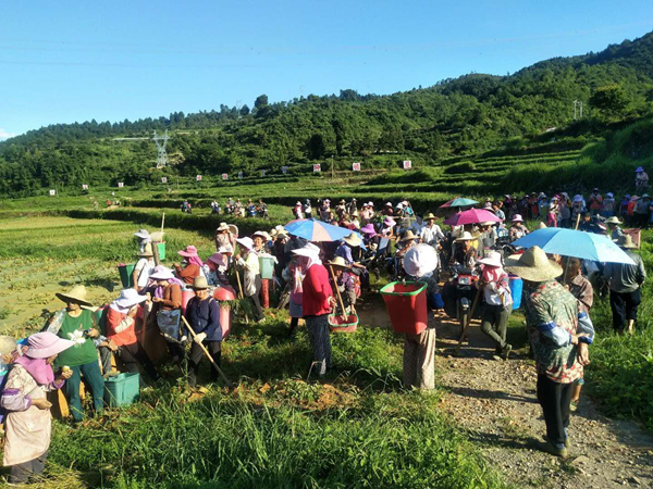 通过村支两委协调,农投公司一次性支付了群众三年的土地流转费,加上党员干部的示范带动,群众吃下了“定心丸”,愿意流转土地的流转土地,想自己种的自己种,一个月时间,1000亩白芨就在思惹的土地上发了芽。“我流转了16亩土地给公司,公司一下子把三年的流转费4万5打到了我的帐上,我就不担心了嘛。”村民陈永顺乐呵呵地说。