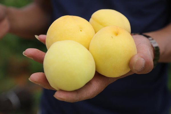 “我初步估算,一亩地可以达到2至3千斤的产量,按10元一斤算,一亩的产值就是2至3万。”看着黄橙橙的桃子,章支书也看到了致富的希望。章振玉告诉记者,目前该村有20多户村民将土地流转获得收益,有300多村民通过在基地就业获得稳定收入。“现在在基地做工,除草、施肥、拉枝这些,一个月搞下来3千多,轻松嘛。”正在基地做工的尹世武说道。