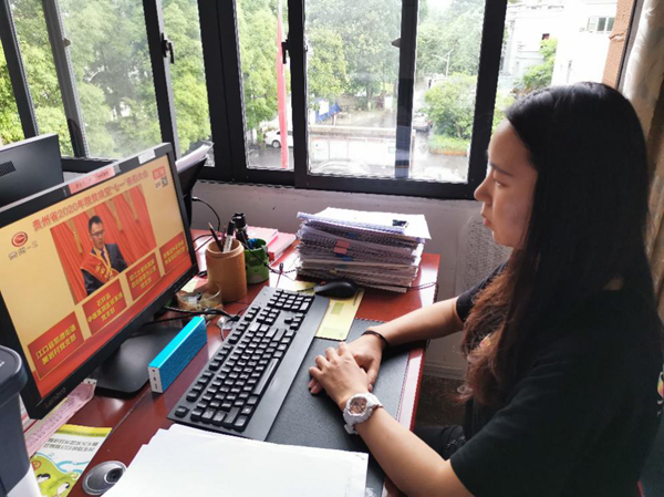 花溪区分会场集中收看七一表彰(拍摄:蒋义)