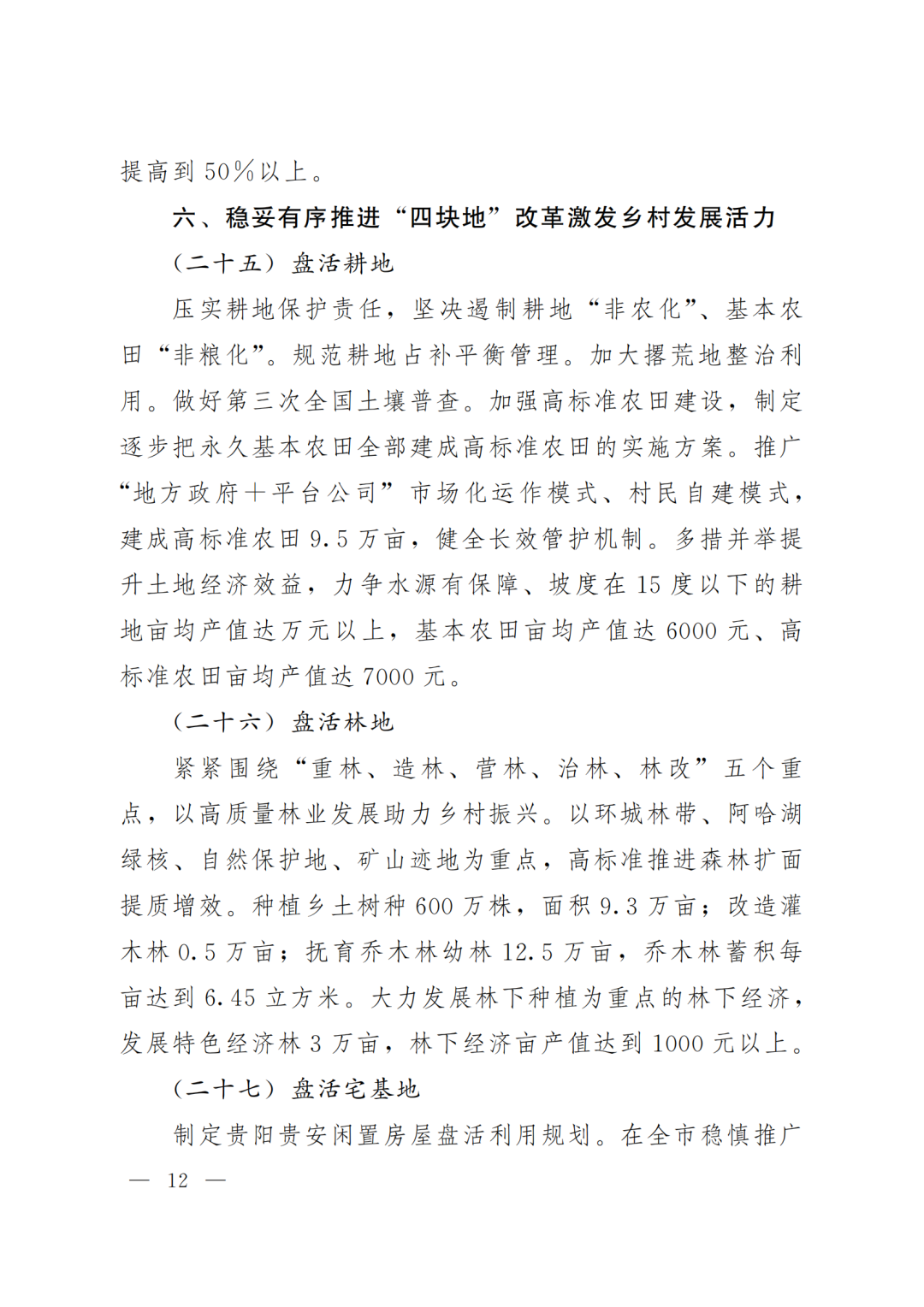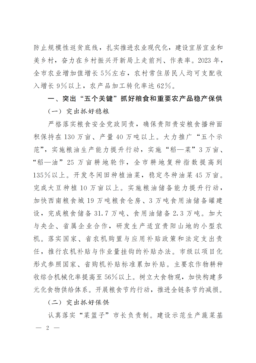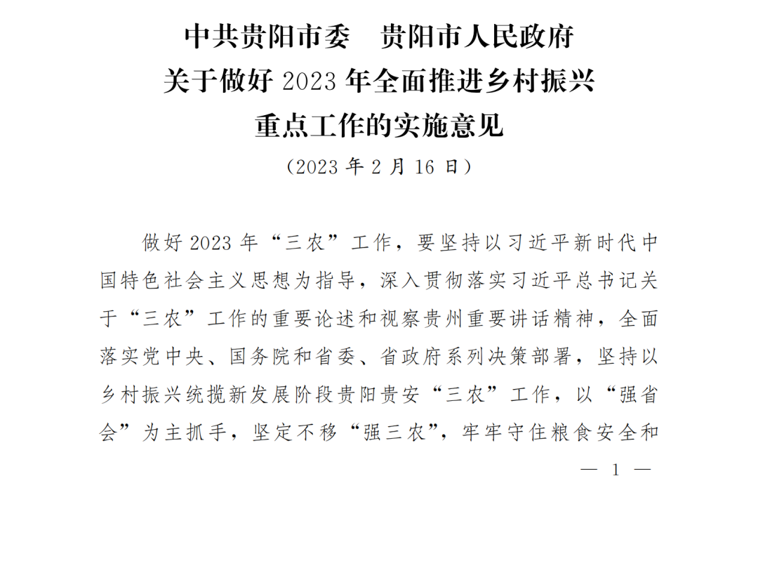 中共贵阳市委 贵阳市人民政府关于做好2023年全面推进乡村振兴重点工作的实施意见