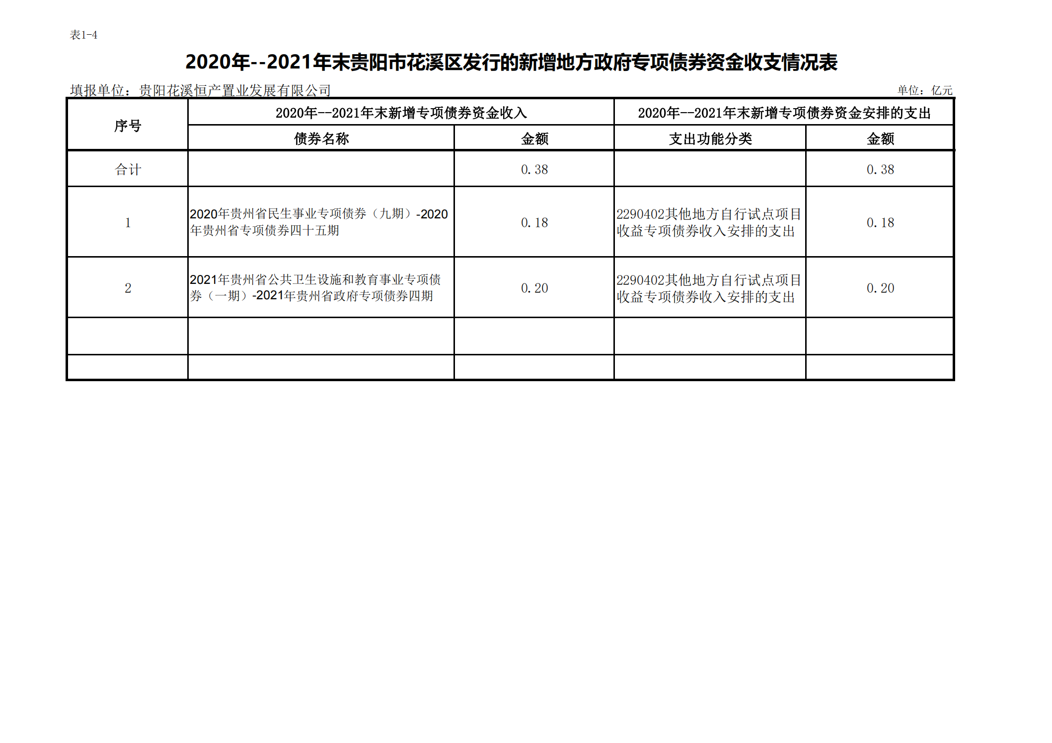 2020年—2021年末贵阳市花溪区发行的新增地方政府债券存续期公开情况表