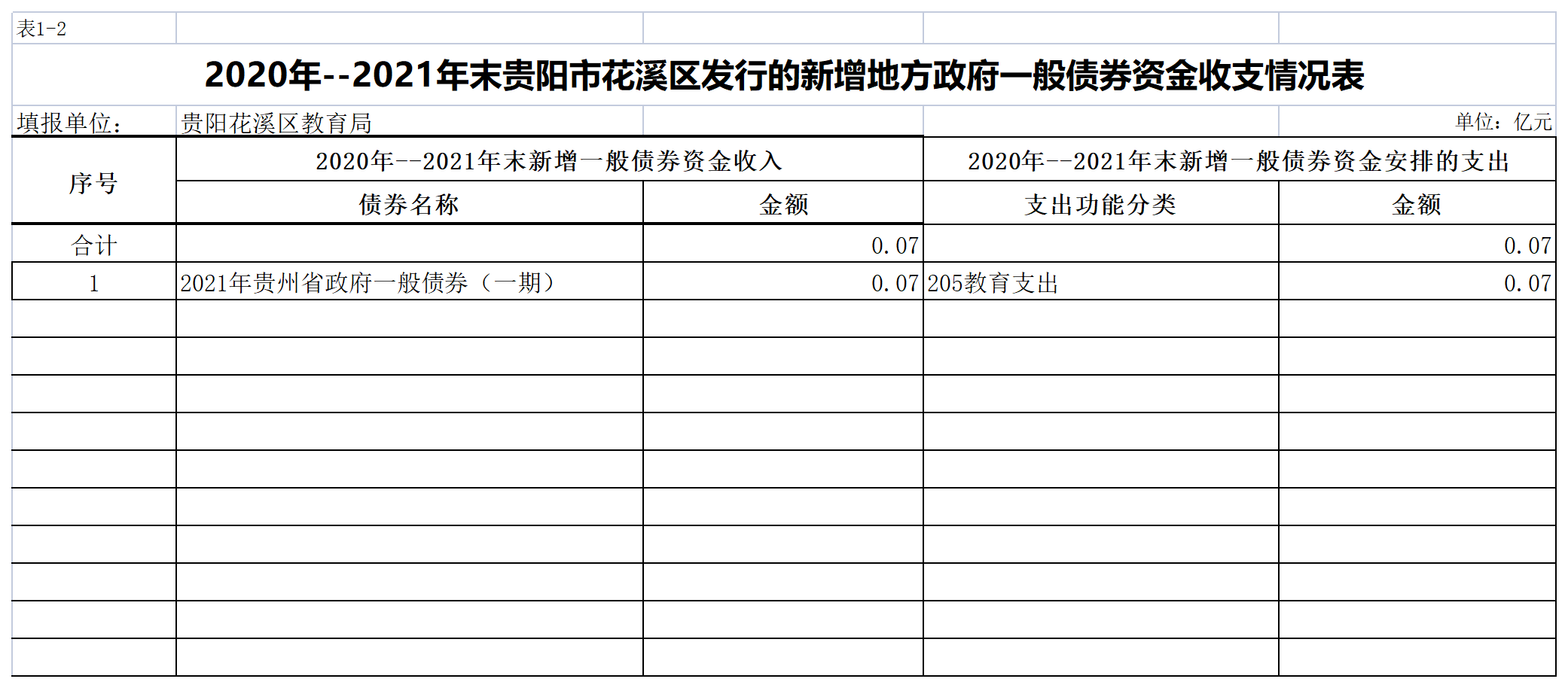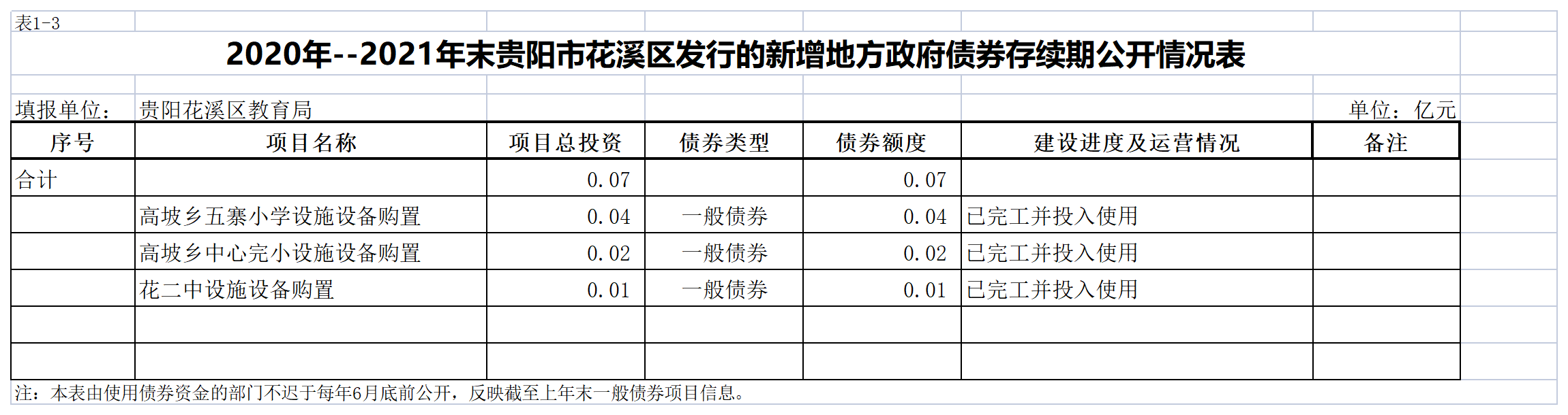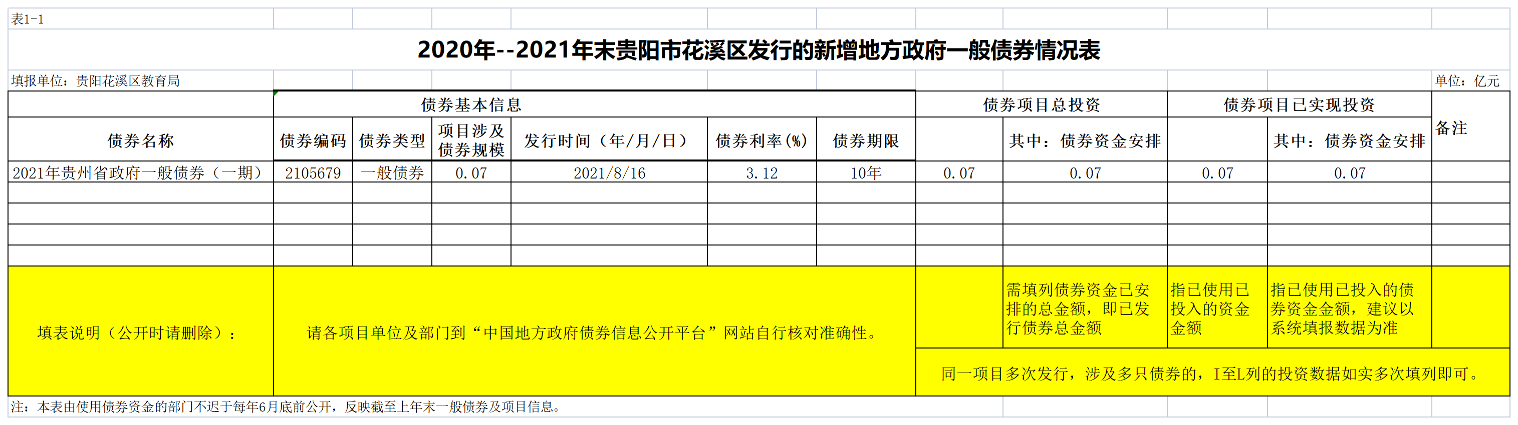 2020年—2021年末贵阳市花溪区发行的新增地方政府债券存续期公开情况表