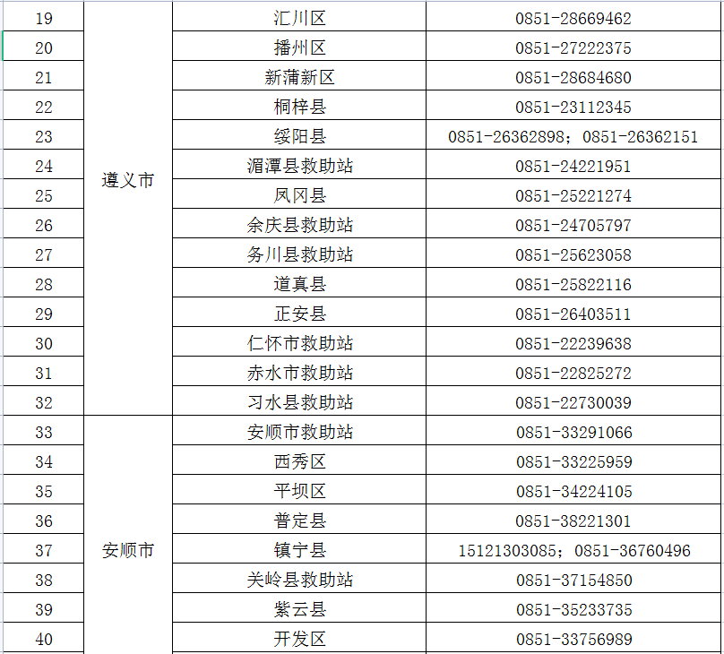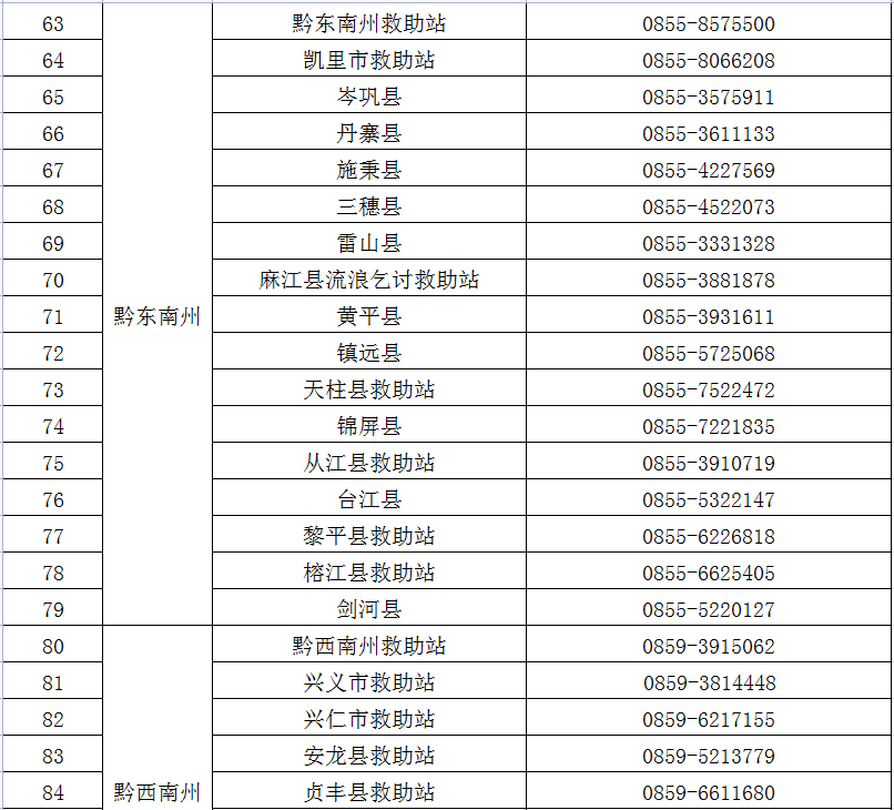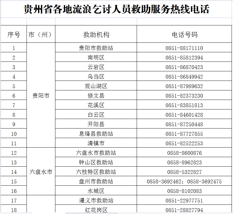 贵州省各地流浪乞讨人员救助服务热线电话