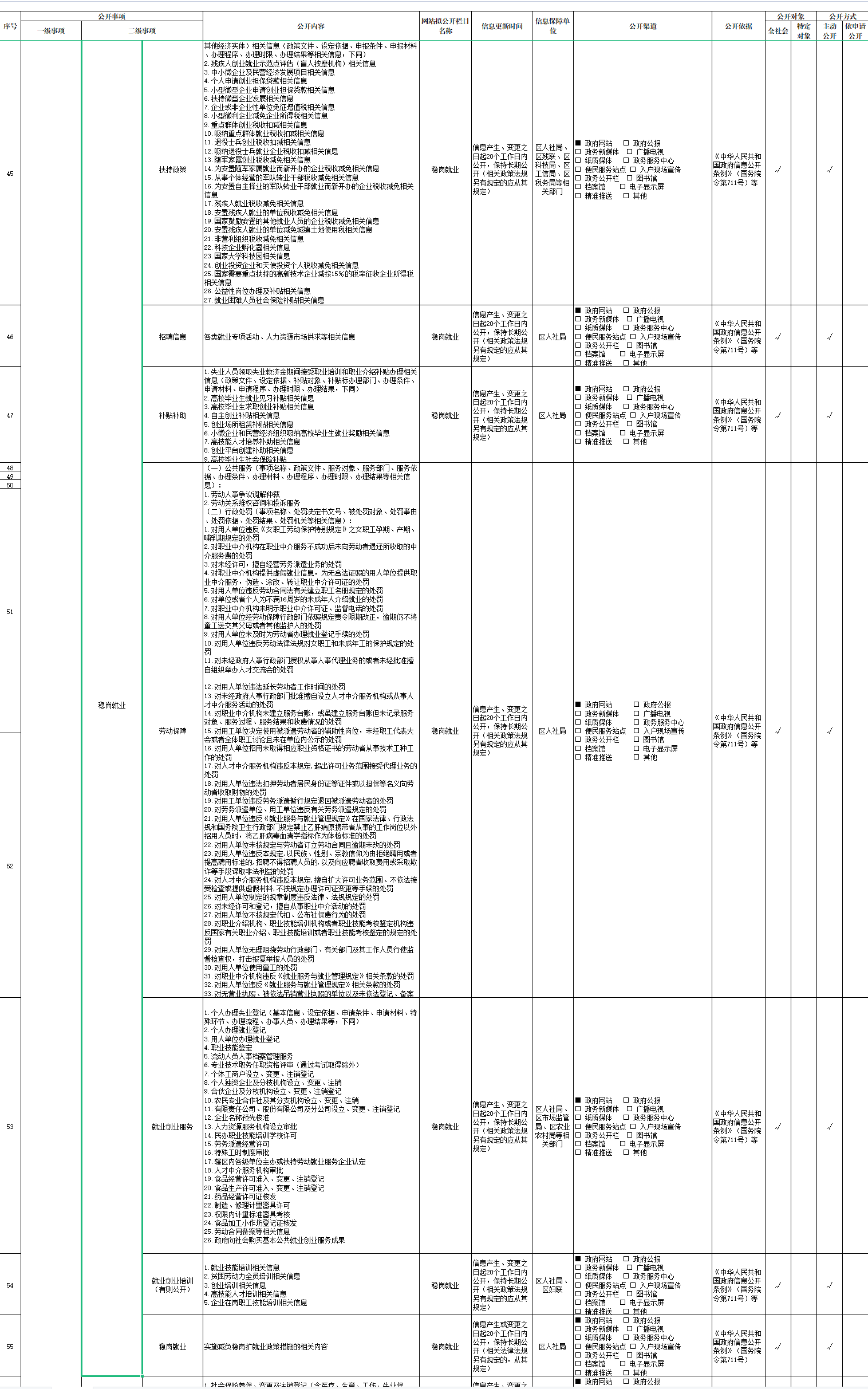 稳岗就业基层政务公开标准清单